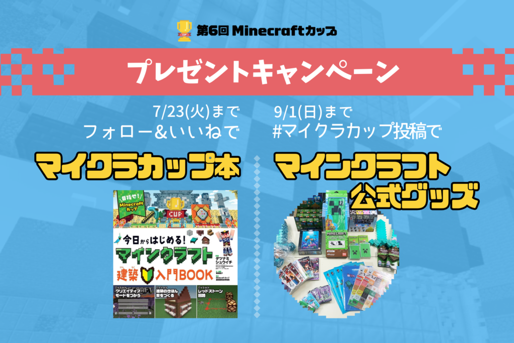 第6回Minecraftカップに挑戦する皆様を応援すべく、書籍やグッズが当たるキャンペーンを開催いたします!