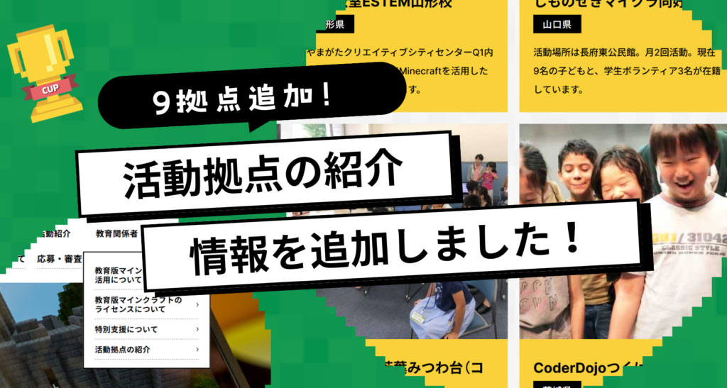 教育版マインクラフトを活用する活動拠点ページに情報を追加しました!2024年11月