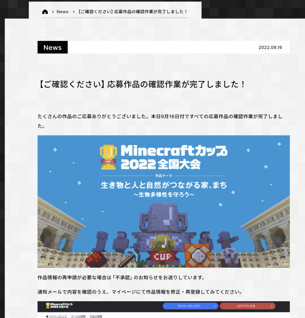 承認/不承認の確認は、マイページの「作品を確認する」にてご確認ください。