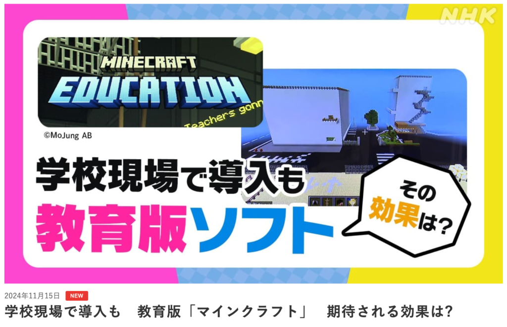 NHK徳島「徳島WEB特集」で、教育版マインクラフトの学習効果に関する記事が公開されました。