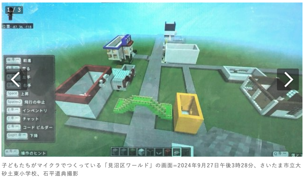 大砂土東小学校では、3年生の児童たちが教育版マインクラフトを使って、さいたま市見沼区の街の再現に取り組んでいます。