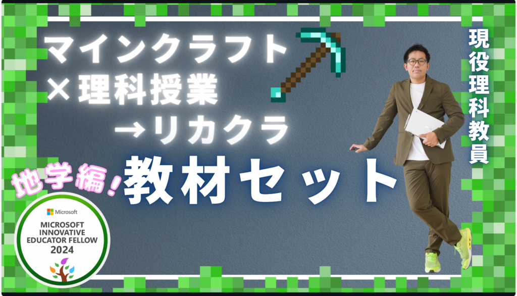岩田先生の素材は、小学6年生理科で学習する地学分野を、教育版マインクラフトを活用しながら学習することができます。