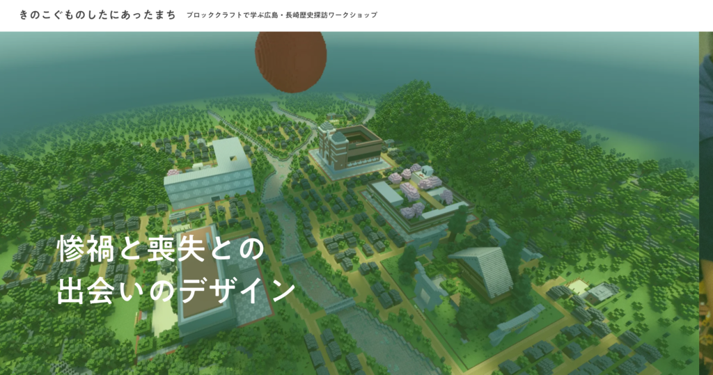原爆投下前の「まち」「ひと」「くらし」を歴史資料とサンドボックスゲームを使って再建するワークショップで、「原爆が奪ってしまったもの」を考える。