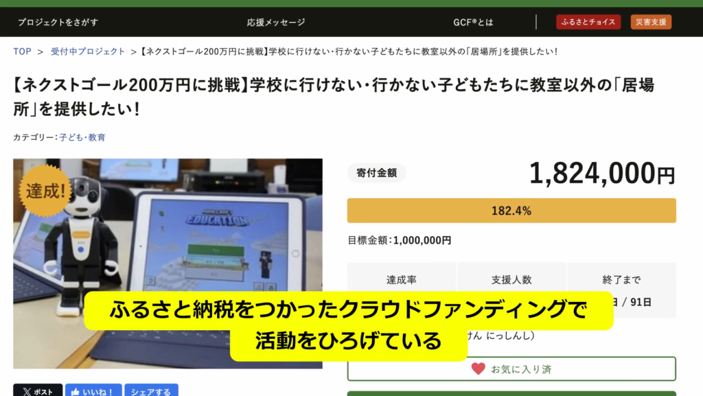 過去には、マインクラフトの取り組みへの資金調達のために、クラウドファンディングを実施しました。