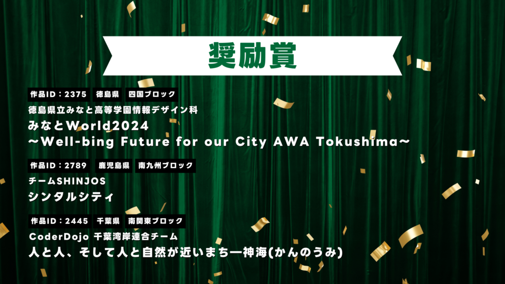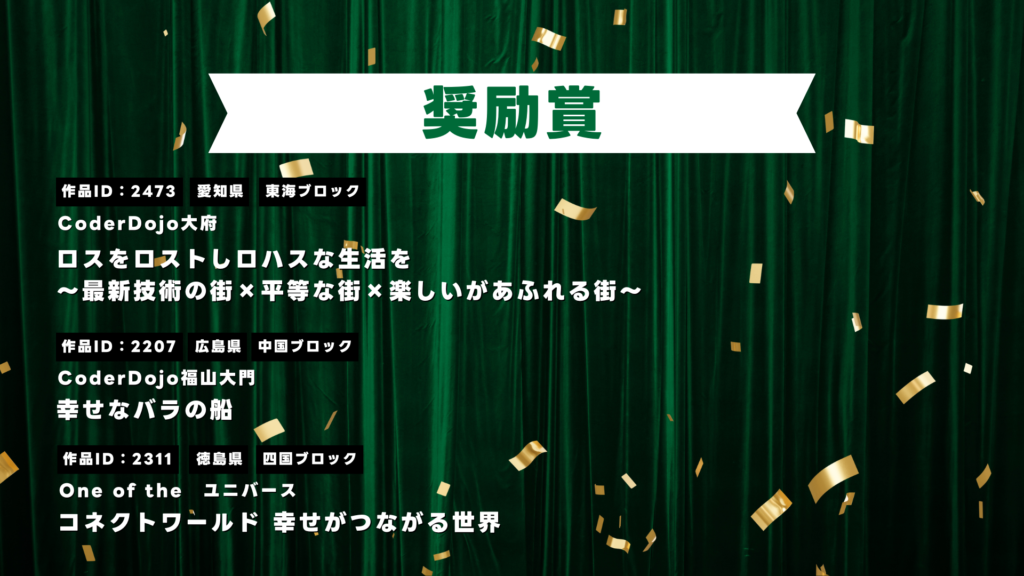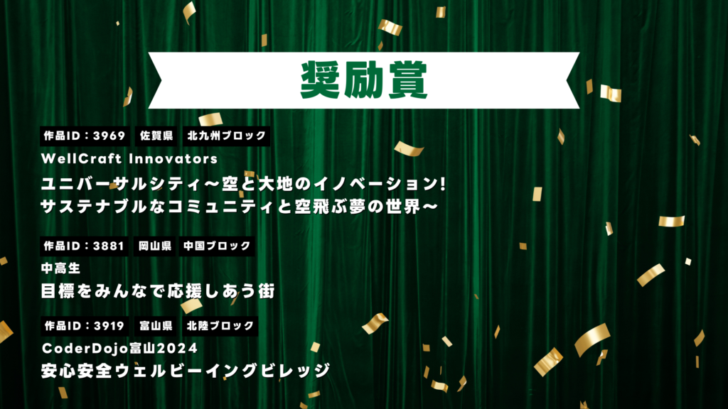 ・奨励賞 ・作品ID ・都道府県 ・地区ブロック