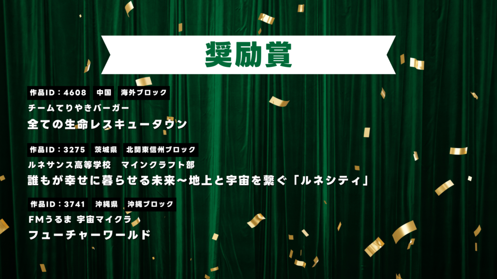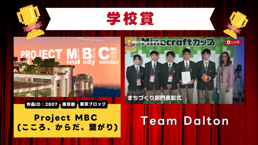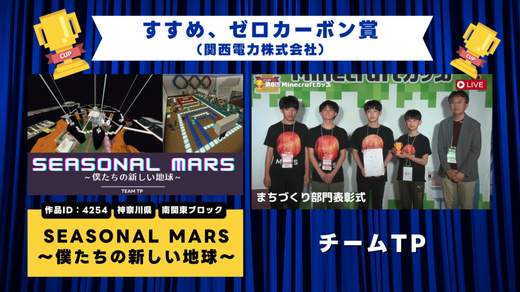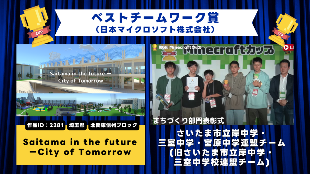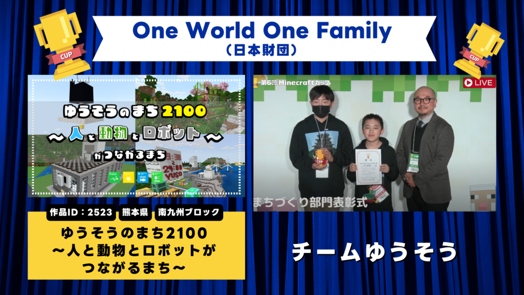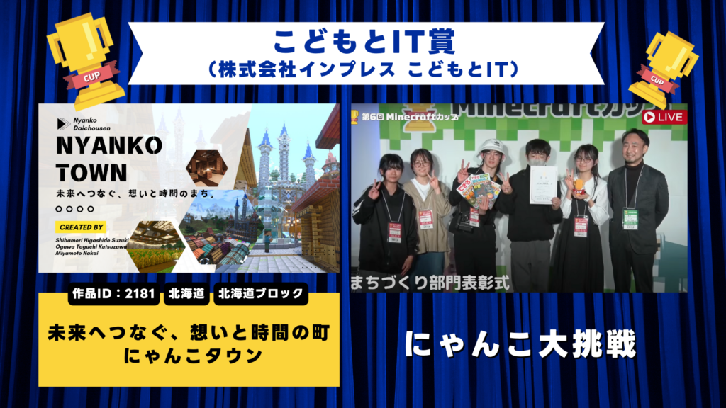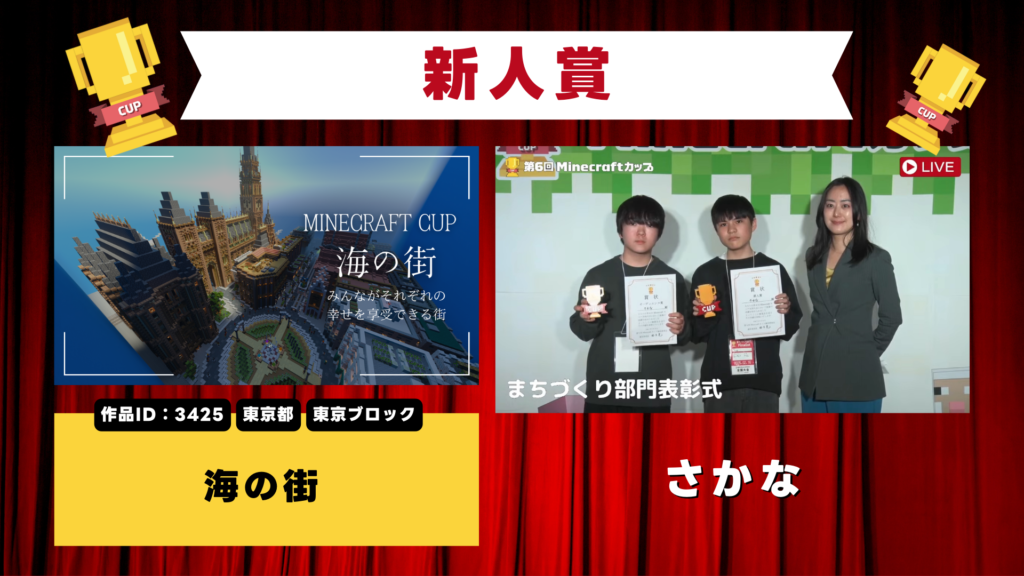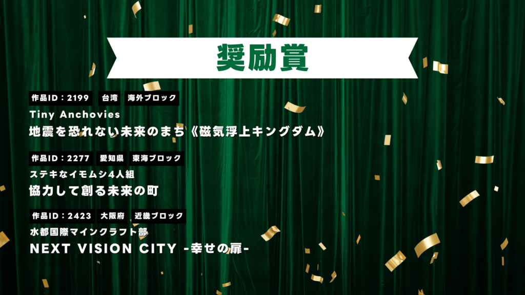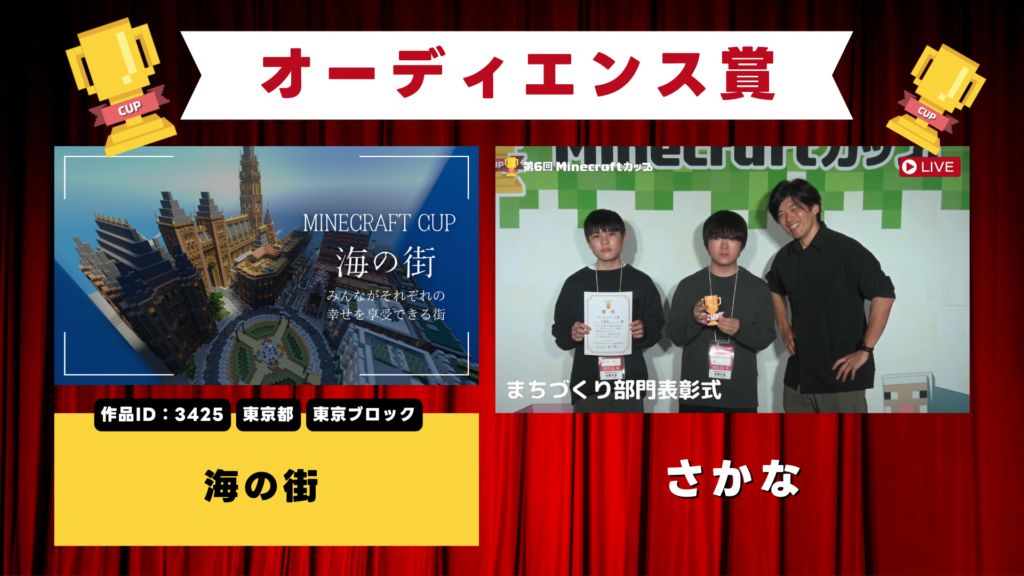 そうして、Minecraftカップから贈られる「総合賞」と、大会パートナーから贈られる「特別賞」が決定しました。