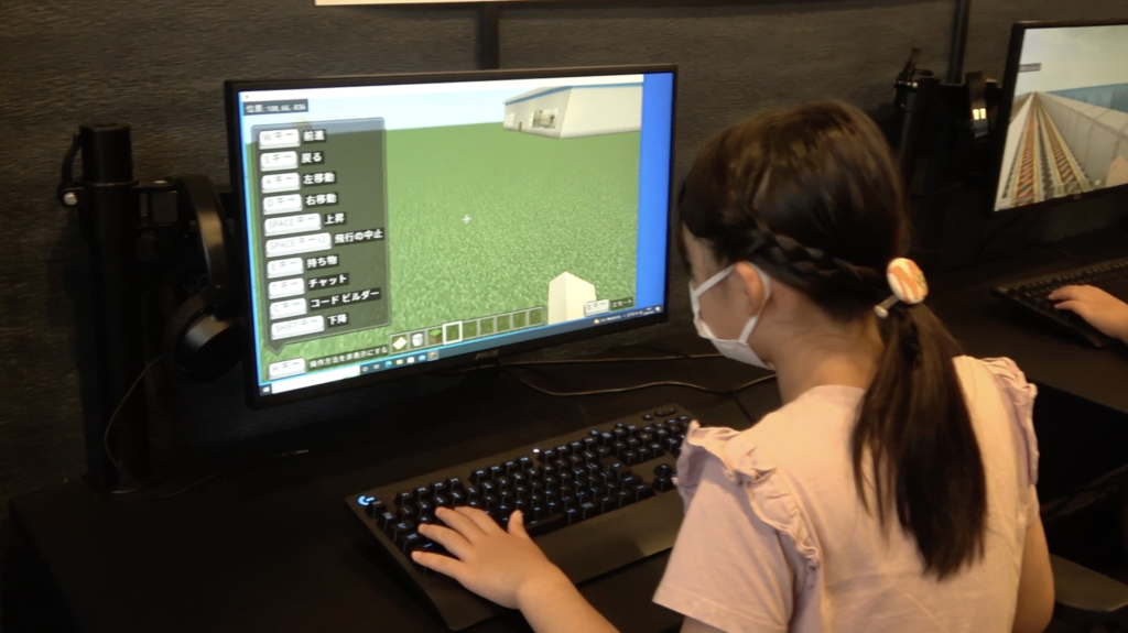 三上さん「子ども達はエージェントに直線をつくらせたり、階段をつくらせたり。あとは自分の周りの整地ですね。アスレチックなんかもつくったり、初心者向けの内容でやっています」