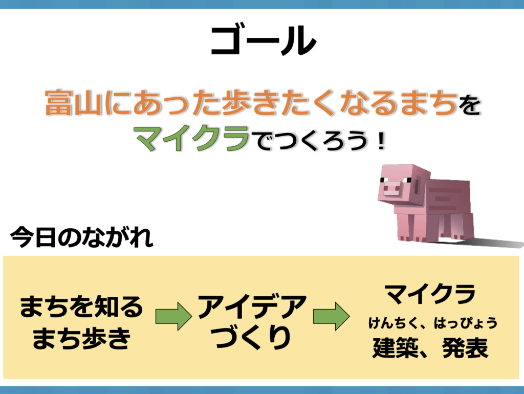 WSは、「富山にあった歩きたくなるまちをマイクラでつくろう!」をゴールに、