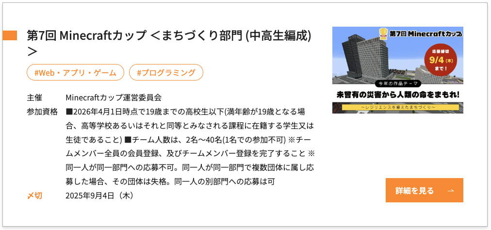 中高生向けということで、第7回Minecraftカップ まちづくり部門(中高生編成)について取り上げていただいています。