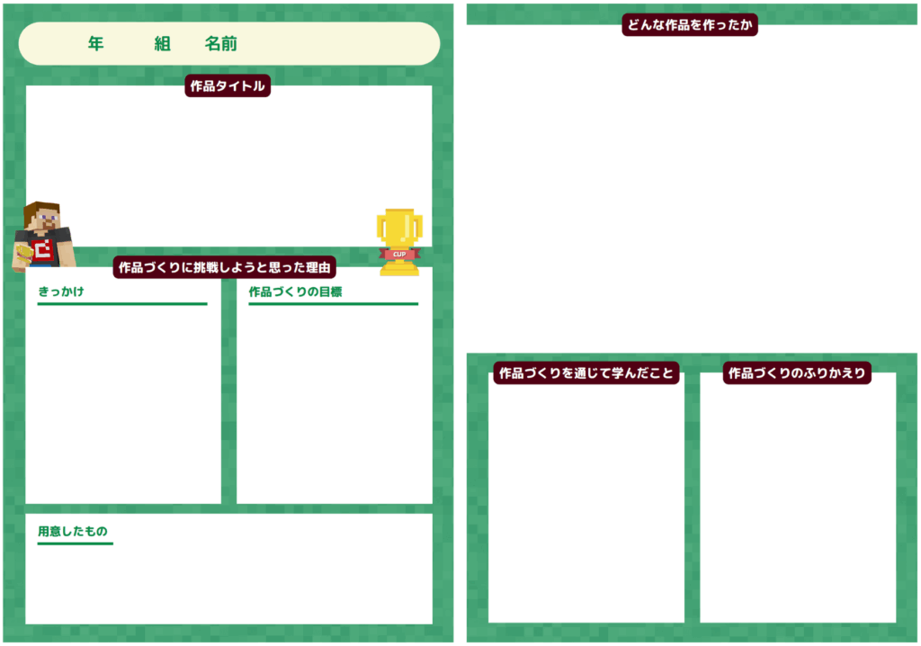 お子さんが大会に参加されている保護者の方から「低学年には作品づくりのハードルが高い」という声があがったことをきっかけに、コミュニティメンバーで会議を重ね、第5回Minecraftカップ(2023年度大会)で初公開。