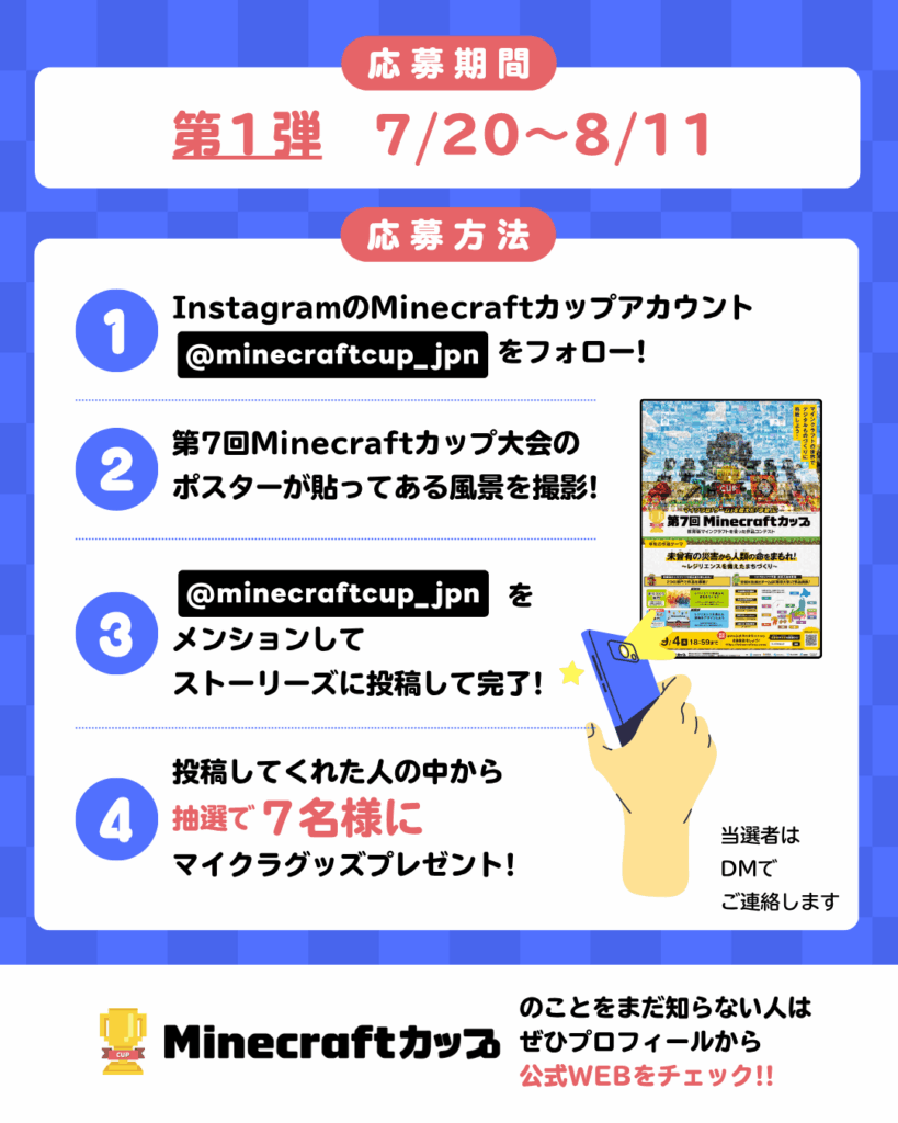 公式アカウントはこちらから:https://www.instagram.com/minecraftcup_jpn/