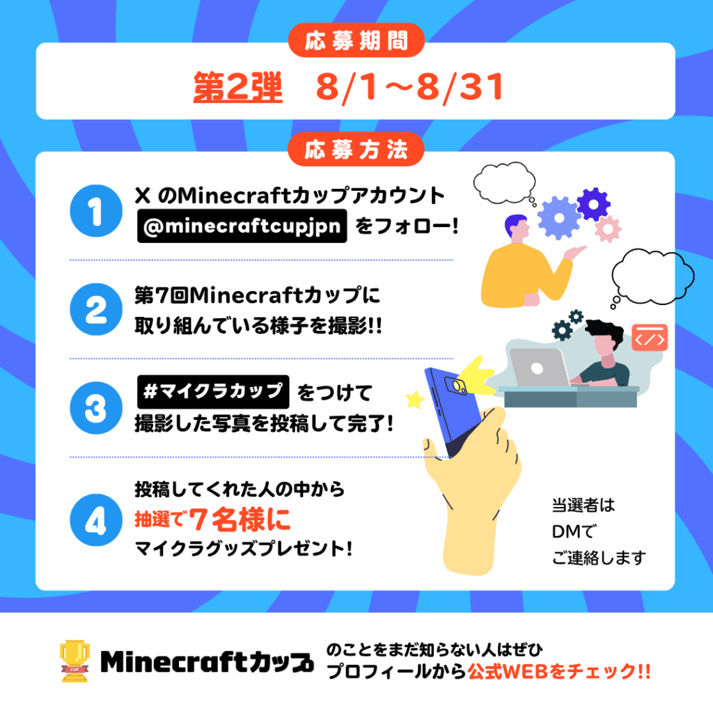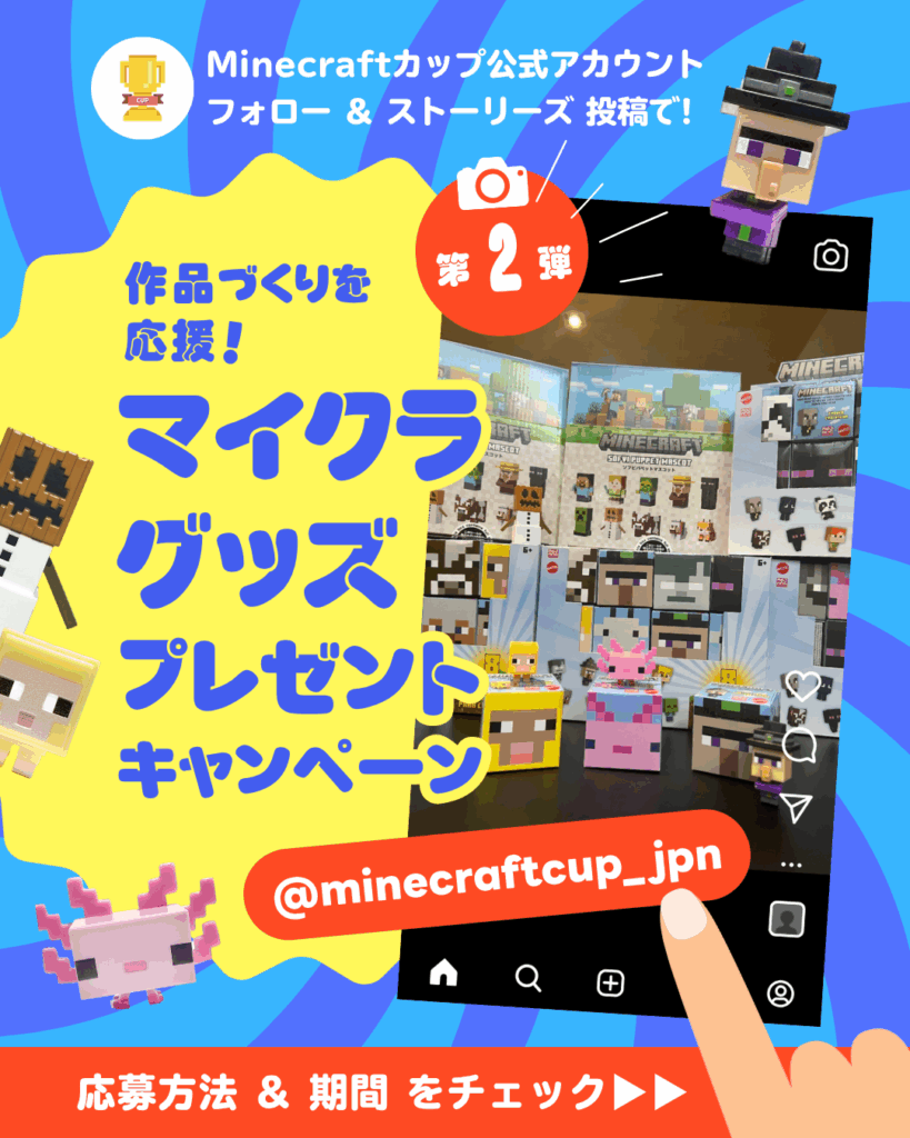 8月1日から、Minecraftカップ公式X、Instagramで、マイクラグッズプレゼントキャンペーン「第二弾」がはじまりました!
