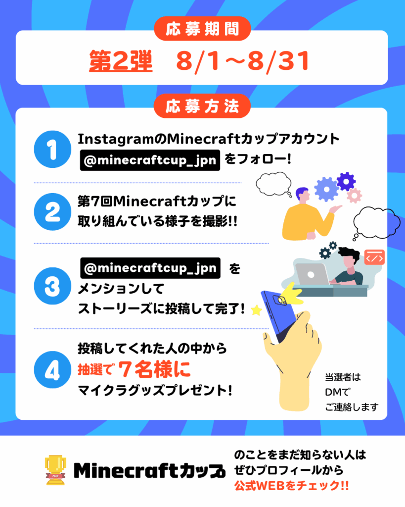公式アカウントはこちらから:https://www.instagram.com/minecraftcup_jpn/