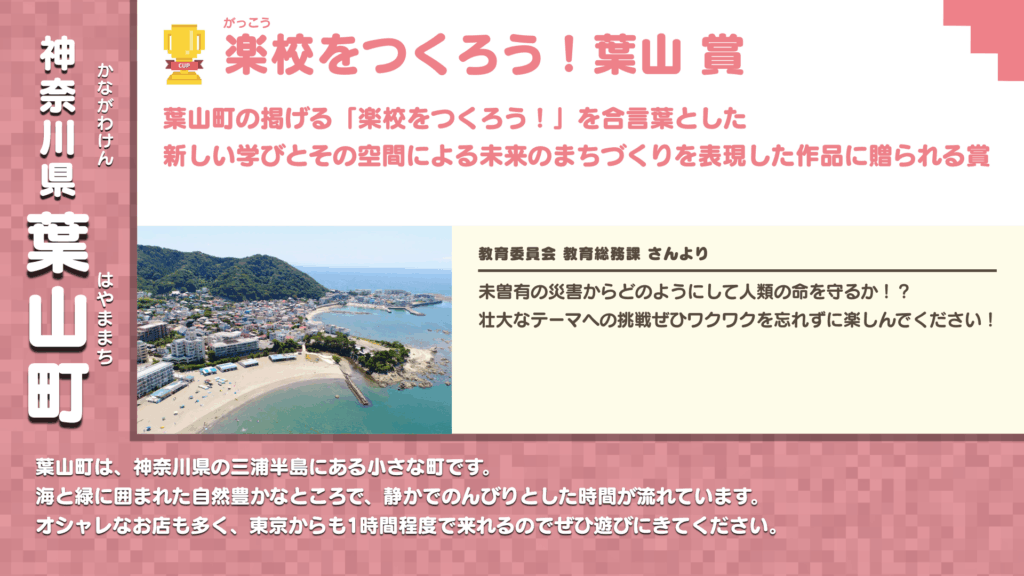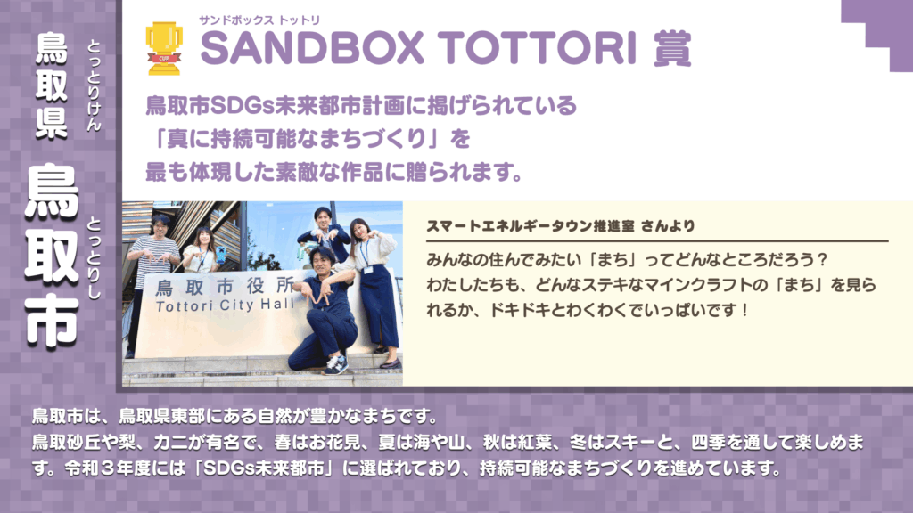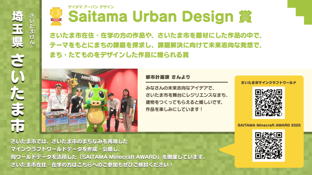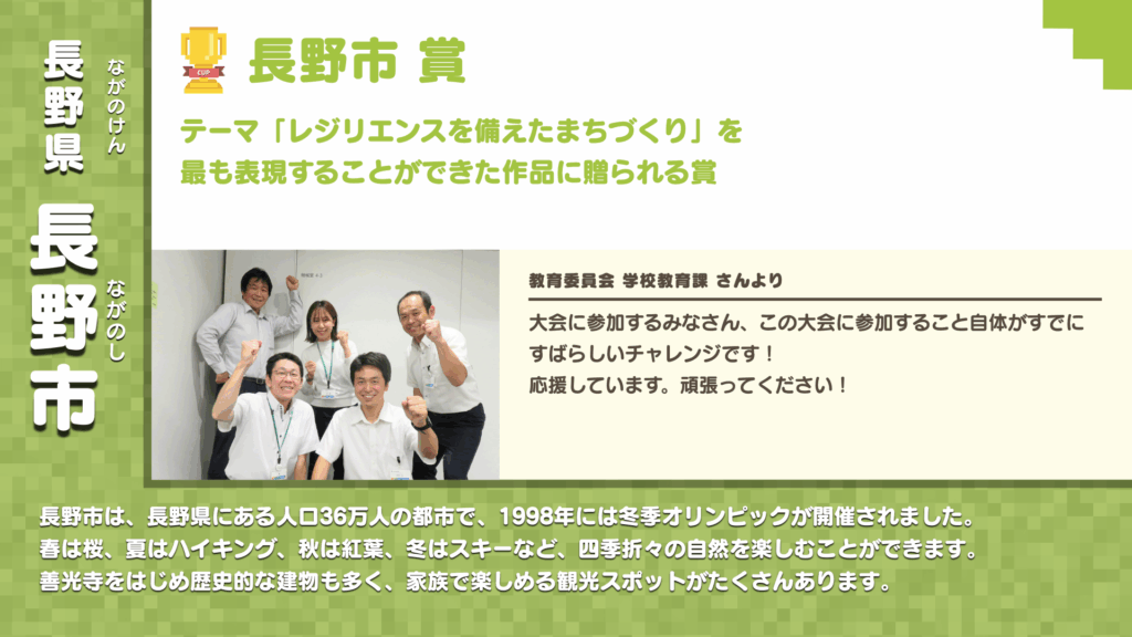 Minecraftカップでは、多くの子どもたちがデジタルものづくりや大会に挑戦できるように、自治体のみなさまに、大会パンフレットの配布や学校でのポスター掲示などの広報協力をはじめ、地区大会に出場する子どもたちへの応援を込めて「特別賞」の設置にご協力いただいています。