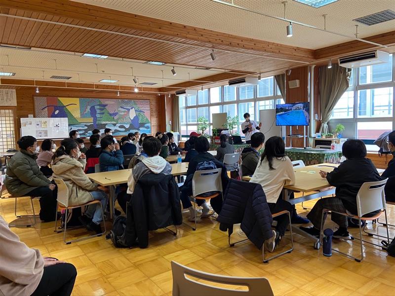 ワークショップでは、まず5つのグループに分かれ、廃校の現状やアイデア出しの方法について学びました。