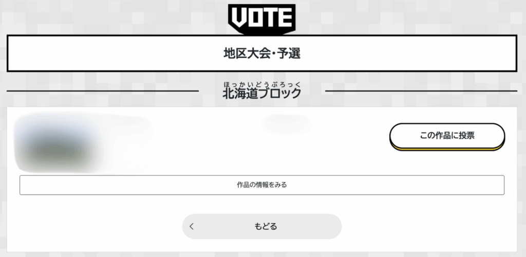 他の地区ブロックの作品を見たい場合は、投票ページを下にスライドし、地区ブロックを選択してください。