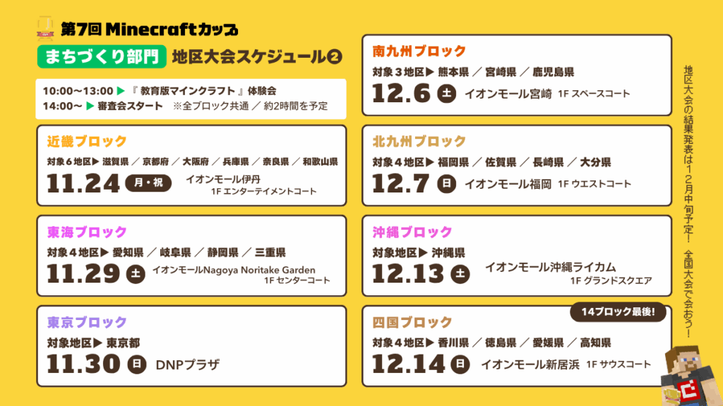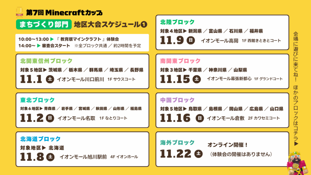 【予選通過】○○ブロック地区大会について/1分動画提出のご案内【第7回Minecraftカップ】