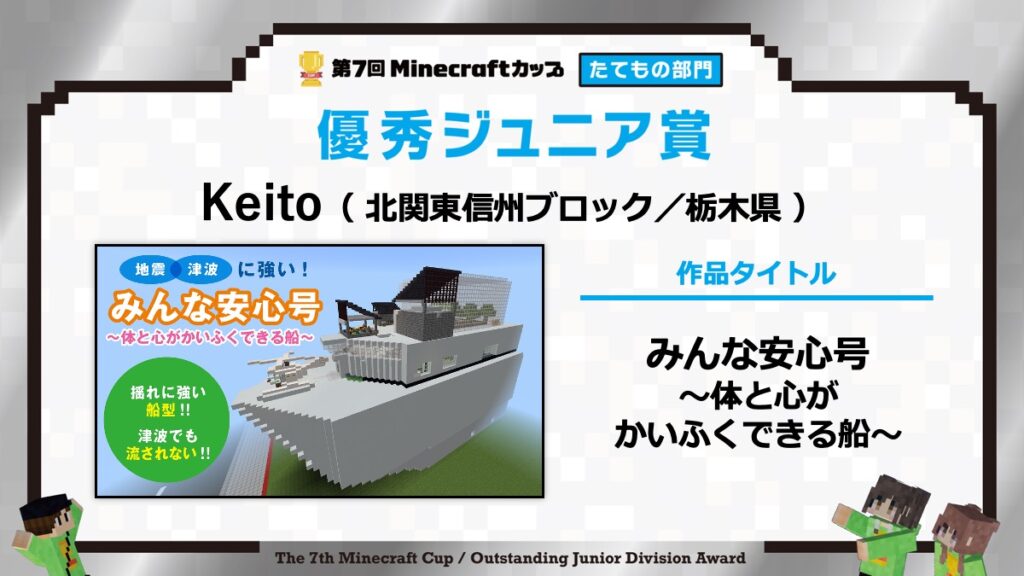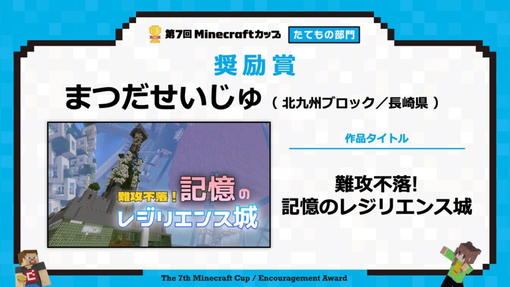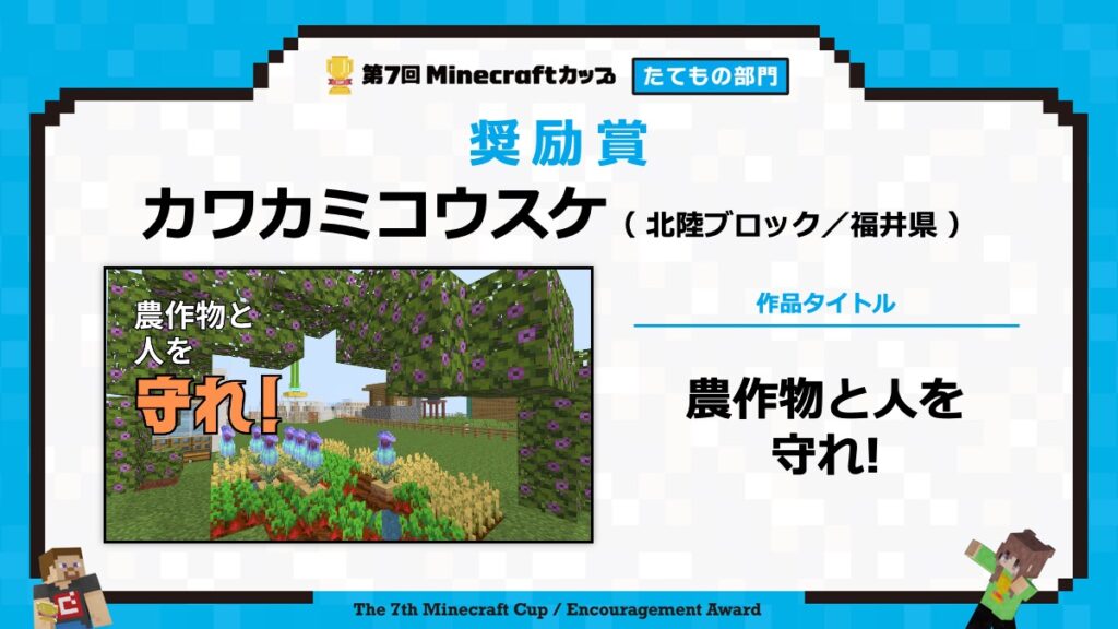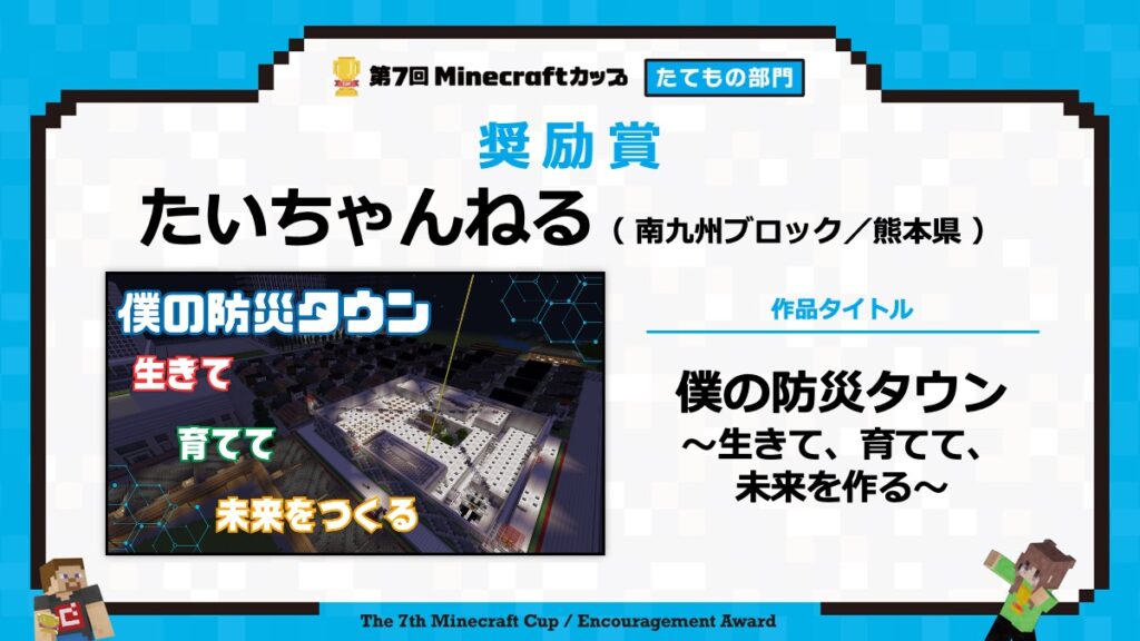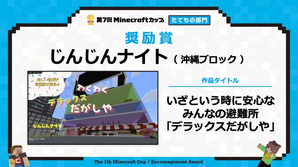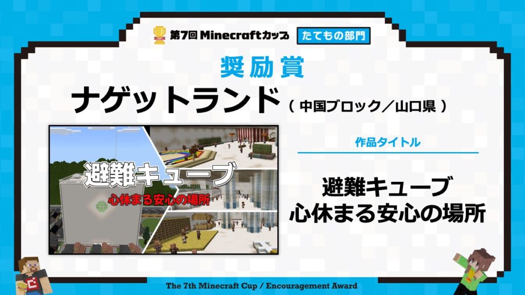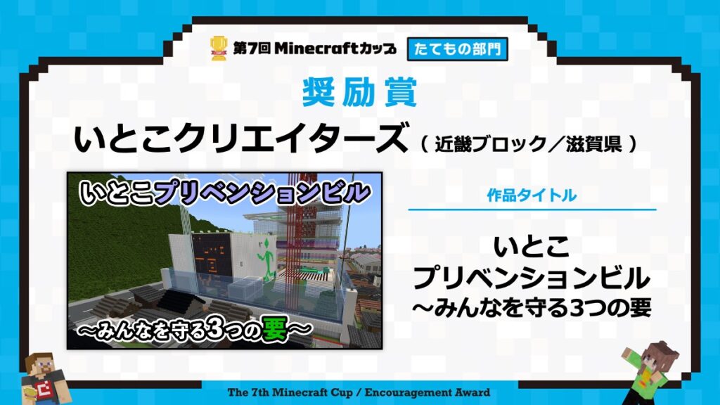 たてもの部門の表彰式は、2月15日に東京大学で行われる「第7回Minecraftカップ まちづくり部門全国大会・表彰式」と合わせて行います。