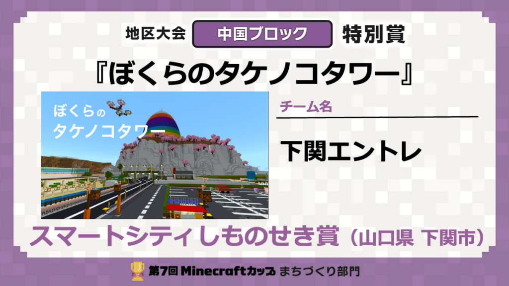 2025年1月30日に、第7回Minecraftカップ自治体パートナー「山口県下関市」にて、まちづくり部門地区大会の表彰式が行われました。