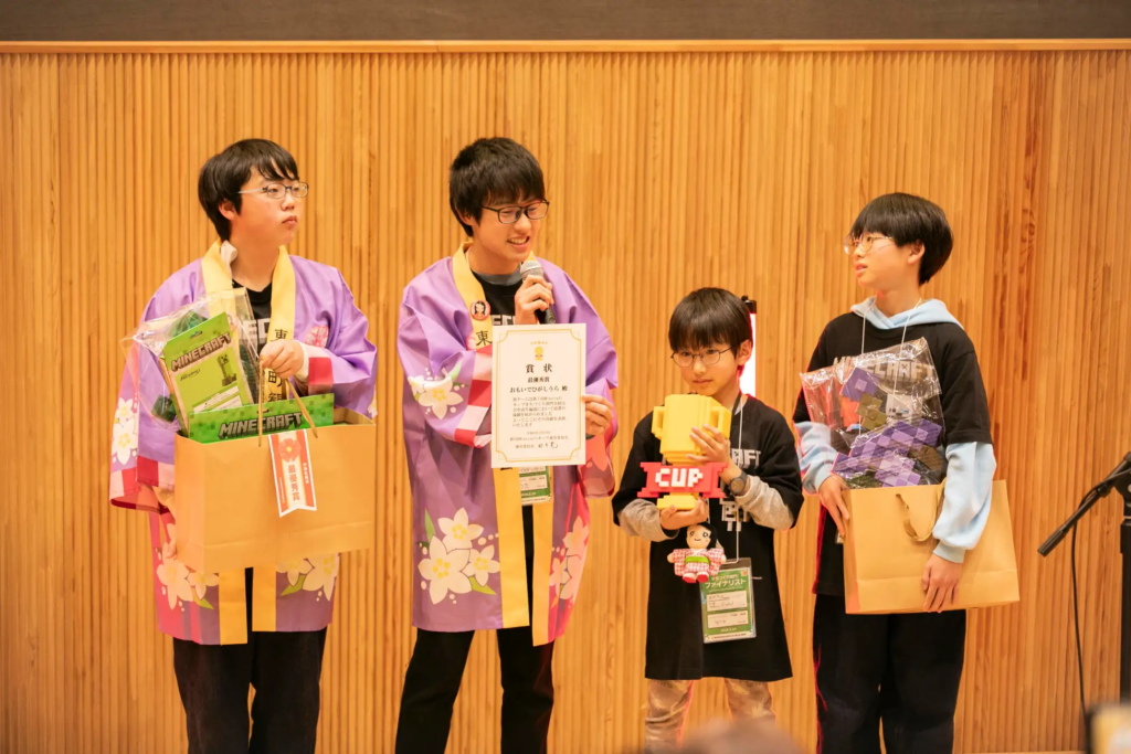 こうして、Minecraftカップから贈られる「総合賞」と、大会パートナーから贈られる「特別賞」が決定。表彰式では、受賞を喜ぶ子どもたちの姿が見られ、会場は大きな拍手に包まれました。