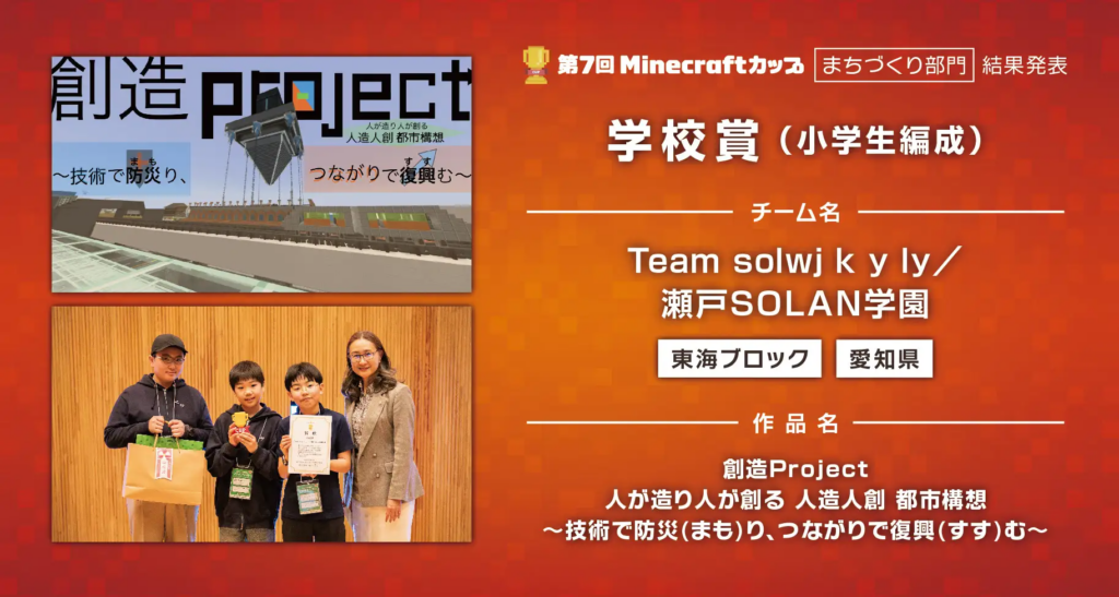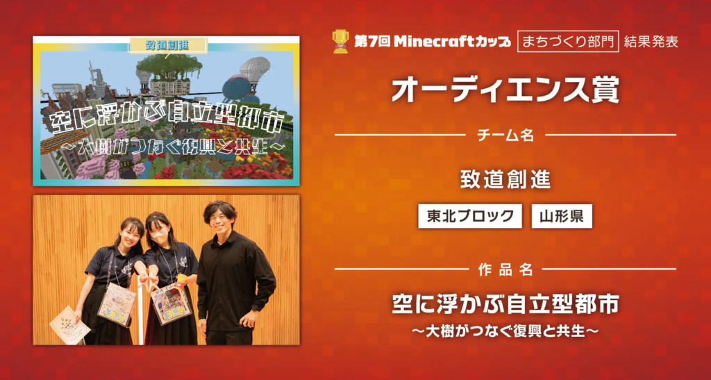 【第7回Minecraftカップ】まちづくり部門全国大会結果発表!最優秀賞は、小学生編成:東京都「イカバルーン」中高生編成:愛知県「おもいでひがしうら」
