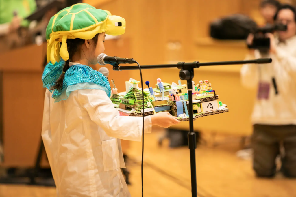 ファイナリストは、現地会場またはオンラインで参加し、作品に込めたアイデアや制作において工夫した点、力を注いだ点などを発表。会場に集まった大会参加者・関係者・見学者を含めた過去最大485名が、子どもたちの発表を見守りました。
