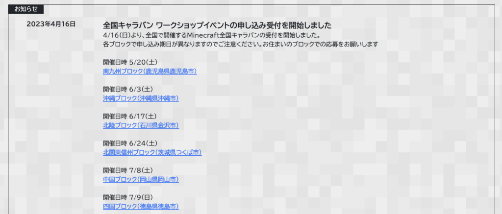 以上が、全国キャラバンに関するお知らせとなります。