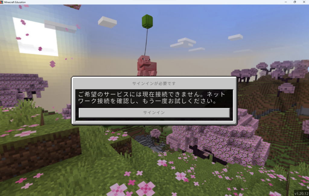 しかし、この状態で教育版マインクラフトを起動すると以下のようなメッセージが出てサインインさえ出来なくなってしまうのです。