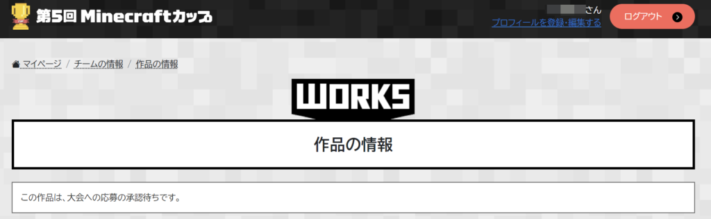 応募が完了した作品は、Minecraftカップ運営委員会事務局にて承認作業を進めていきます。
