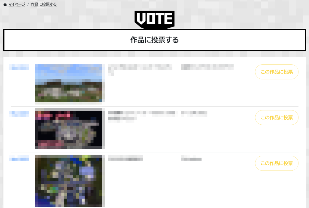・Minecraftカップの参加登録が済んでいる人なら、作品を応募している/いないに関わらず誰でも投票できます