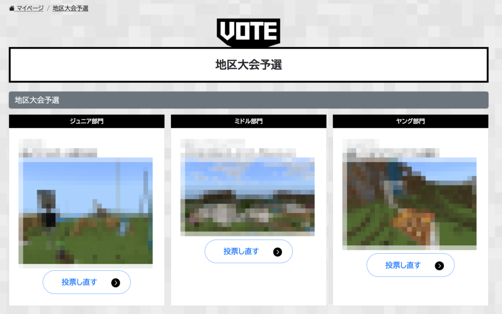 ジュニア部門、ミドル部門、ヤング部門すべてに投票すると、以下の画像のような表示になります。