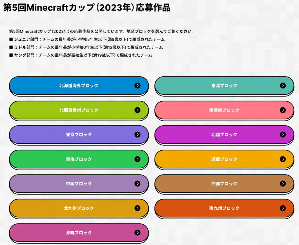 また例年、地区ブロックごとの地域性が作品に表れるのも興味深く、応募作品を通して「子ども達が自分が暮らしている街をどんな目線で捉えているのか」を感じられるのもMinecraftカップの特徴です。