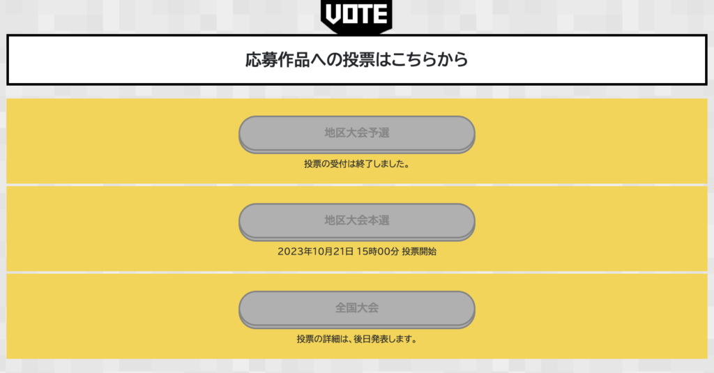 ・予選では「自分が住んでいる地区ブロックの作品にのみ投票可能」でしたが、