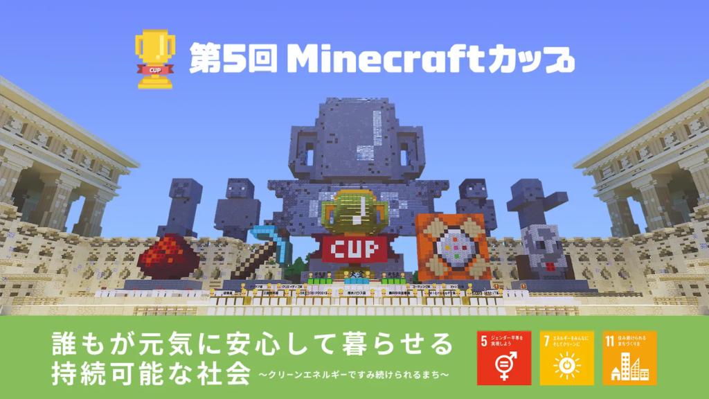 大会では「Minecraftをゲームから学習教材へ」と、様々な種類があるMinecraftの中でも教育現場やプログラミング学習に適した教育版マインクラフトでつくられた作品を募集しています。