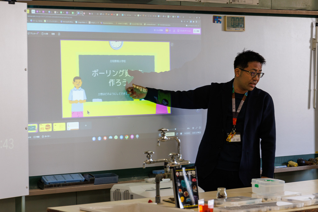 Minecraftの世界は現実の世界と共通点が多く、マグマと水を少し遠いところに置くと丸石が出来上がるという仕組みやマグマの近いところにある花崗岩であったり、閃緑岩であったりするという知識をゲームの中で得ている子たちもいるので、そういった知識を引き出しながら授業を進めています。