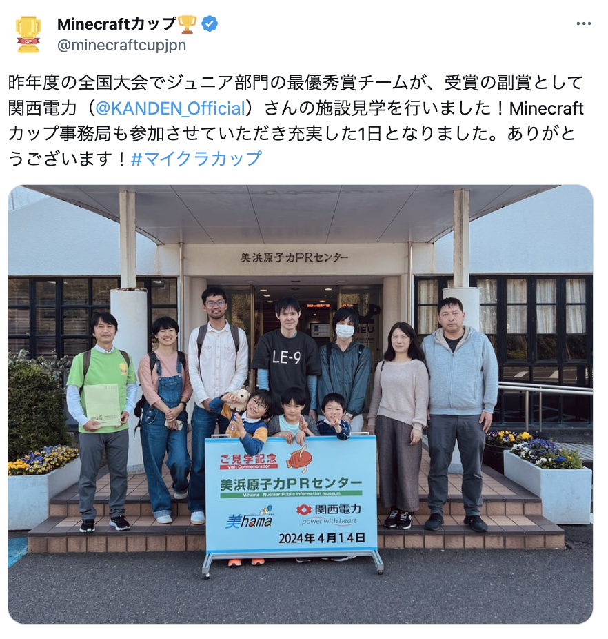 第5回Minecraftカップ(2023年度大会)で、最優秀賞を受賞したチームの副賞として、2024年4月に関西電力株式会社 美浜発電所の見学ツアーを行いました。