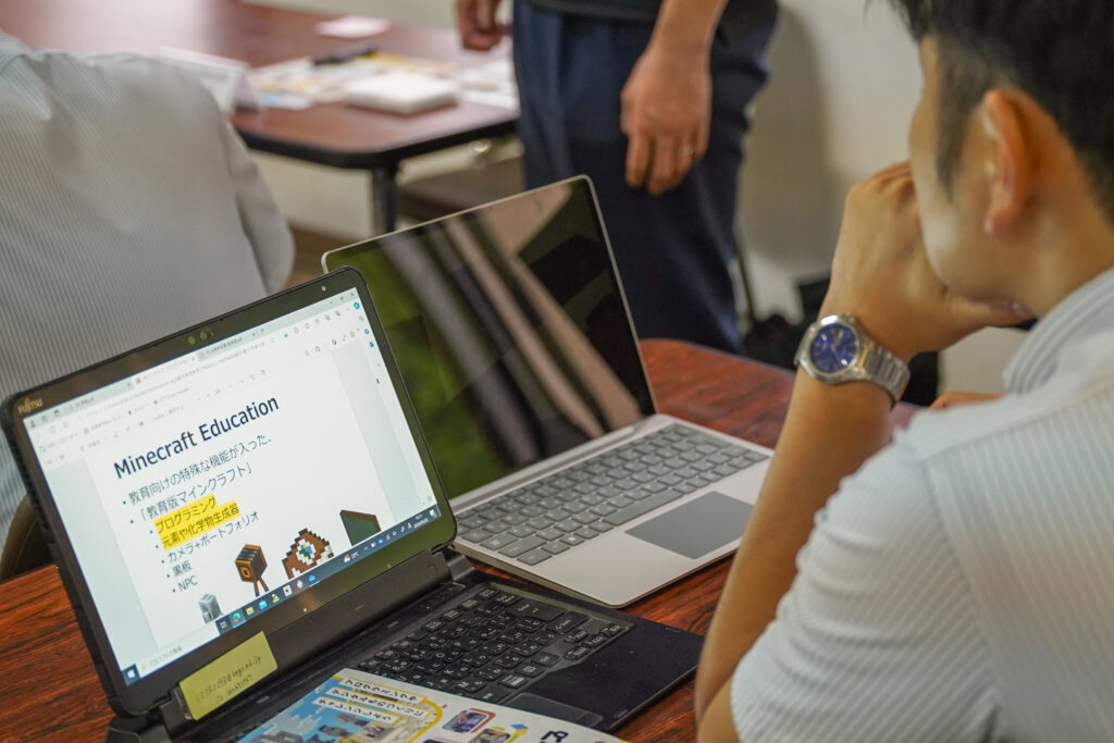 参加された先生方の中からは「Minecraftは知っていたけど初めての体験でいい機会だった」「授業で導入する際にどのようなことを考えればいいか参考のひとつになった」といった感想が聞かれました。その他、アカウントや端末スペックについてなど様々な質問をいただきました。