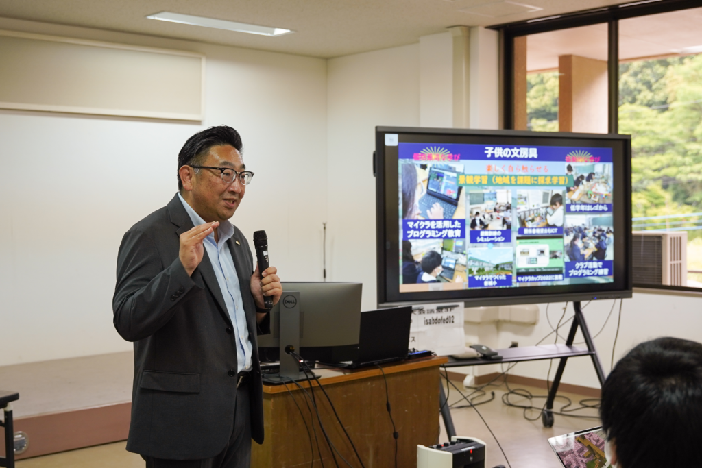 そして、垂水市立新城小学校 川辺孝志さんから「教育版マインクラフトの授業における活用について」の事例発表や、伊佐市教育委員会 学校教育課長 久木田昌之からの総評で研修会は終了しました。