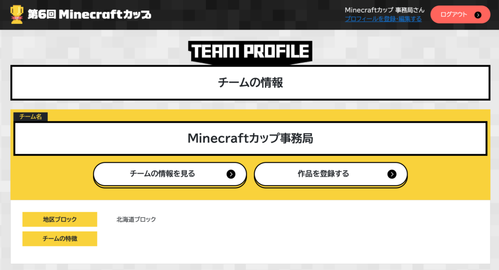 ・チームを作成後、下記の画面から「作品を登録する」を選択する。