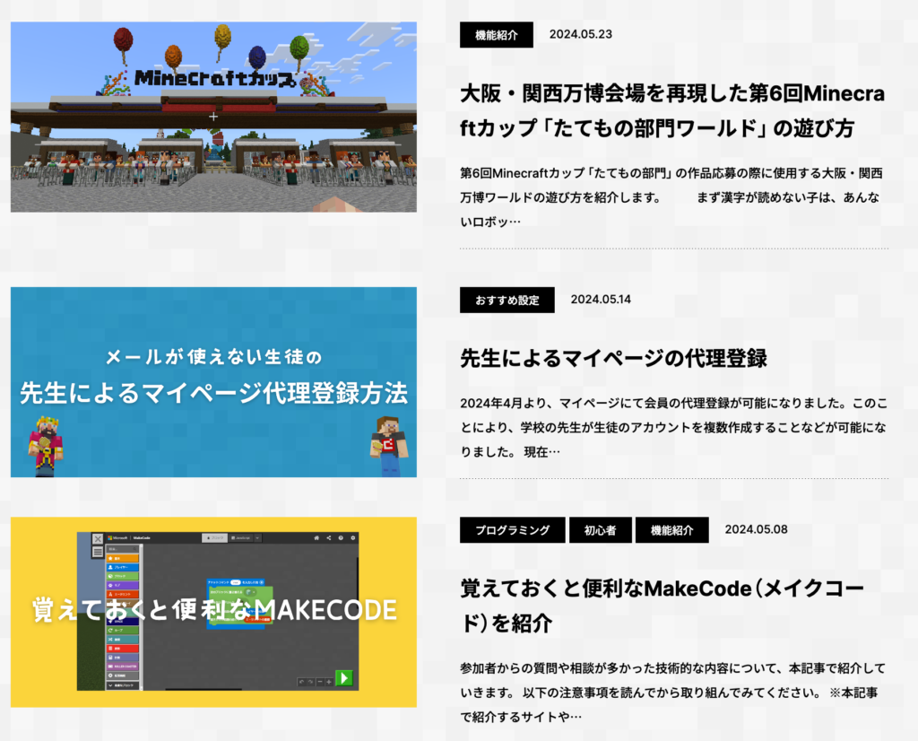 Minecraftカップでは、大会に参加する皆さんの作品づくりをサポートするために、