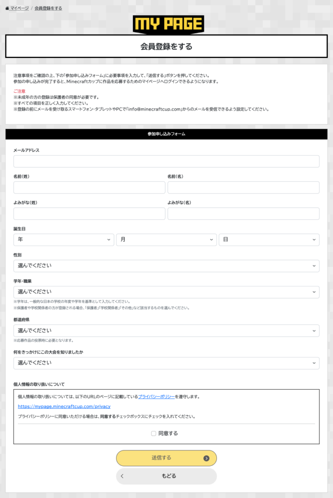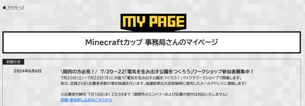 お申し込みの際は、まずはMinecraftカップへの会員登録からお願いします。