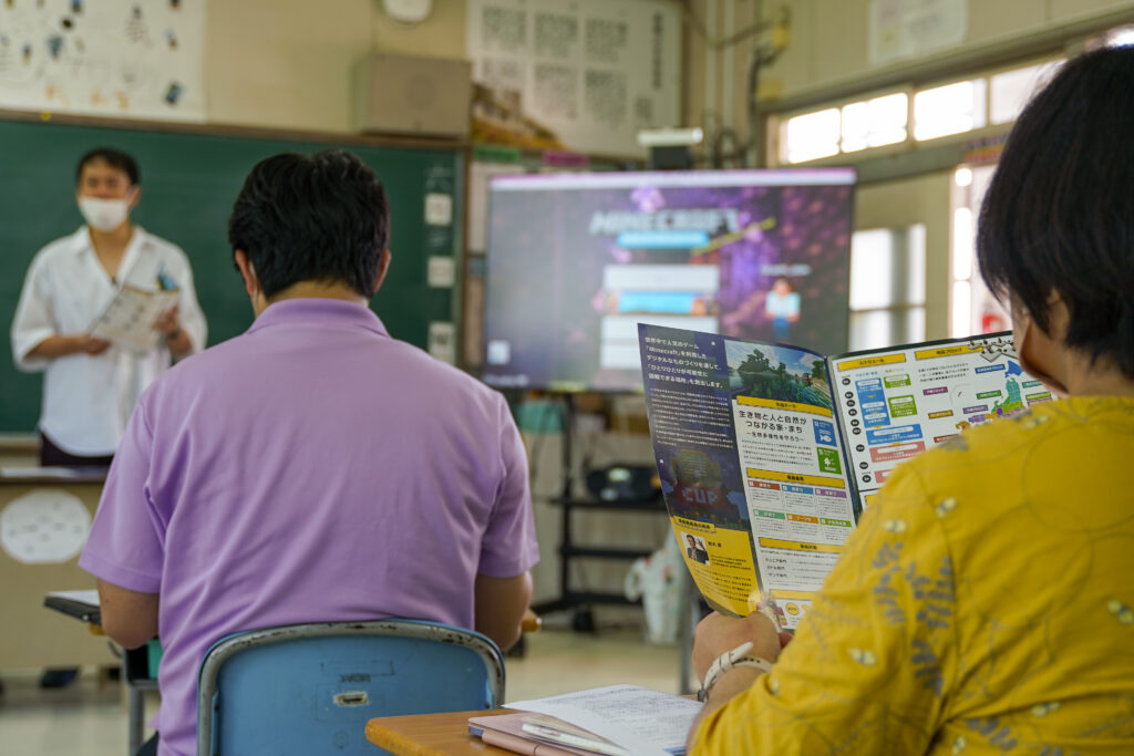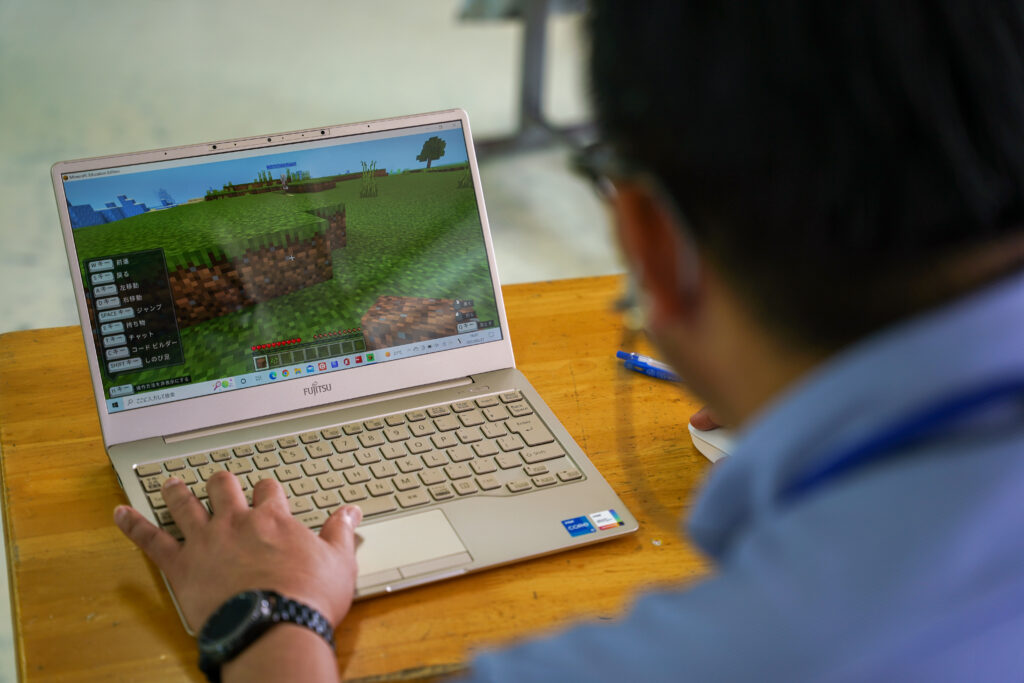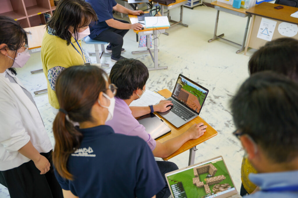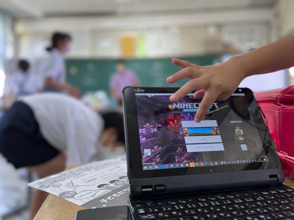 5・6年生がMinecraftで学校を再現する取り組みも実施しています。本年度は、Minecraftカップ2022全国大会にチャレンジすることを活動計画のひとつとしています。