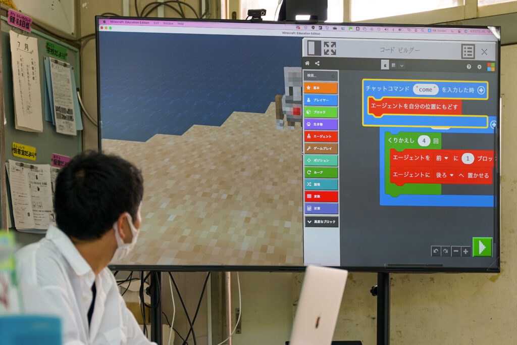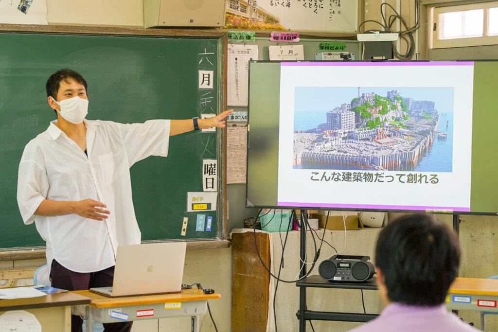 「これまで取り組んできた景観学習の最終目標を「未来の新城の街づくり」とし、SDGsの観点から探求したことを、マインクラフトで未来の街をプログラミングしていく取り組みを考えています。そして完成したものを保護者や地域に発表したり、他校とのオンライン交流で発表したりする構想を持っています。」