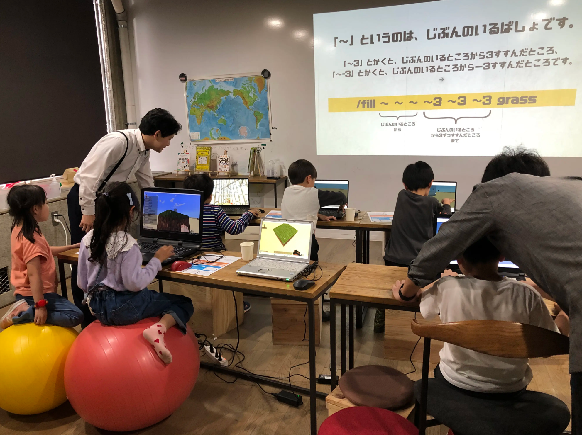 やまがたクリエイティブシティセンターQ1内で、授業&自主学習でMinecraftを活用した学びにもとりくんでいます。
