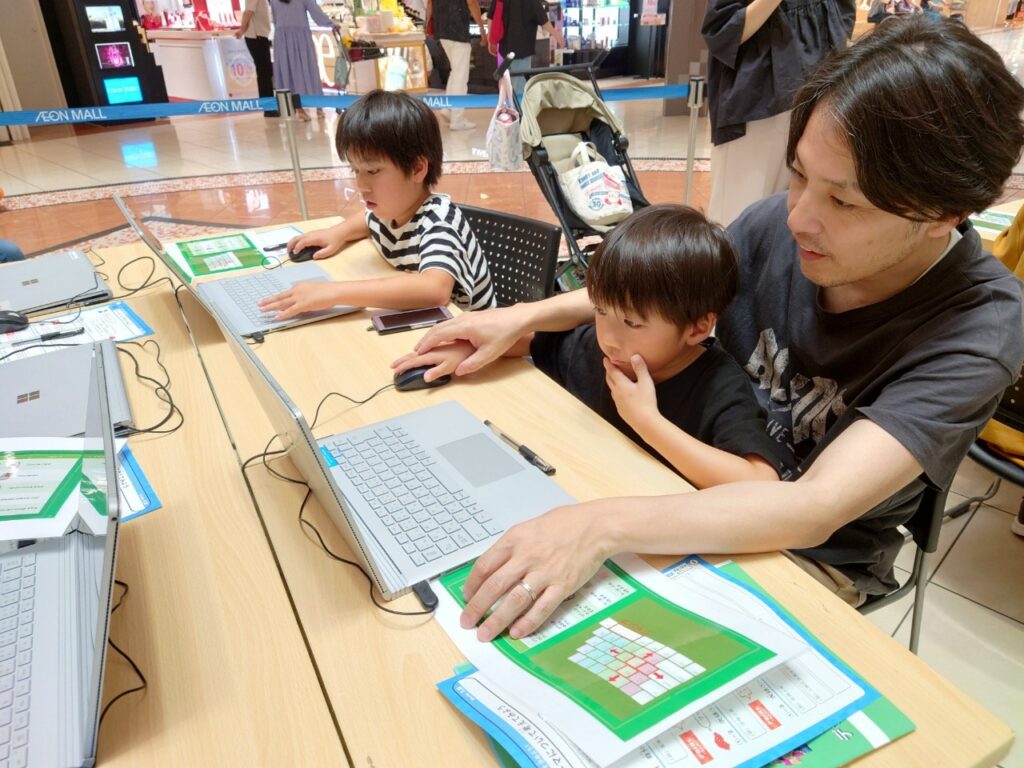 体験会では、約350名の子ども達に、教育版マインクラフトを体験してもらいました。