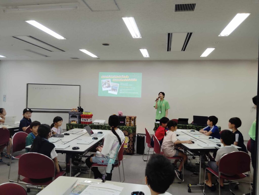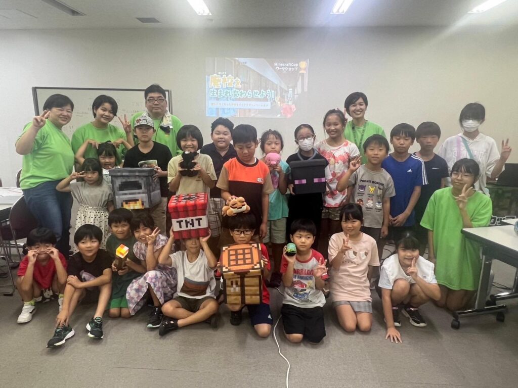 基山町は、教育委員会主導で教育版マインクラフト活用を視野に入れ、第6回Minecraftカップ自治体パートナーに参画いただきました。ワークショップは近隣地域で活動する一般社団法人HATTOが主催し、小学生21名が参加しました。当日は町長、教育長も見学にお越しいただきました。
