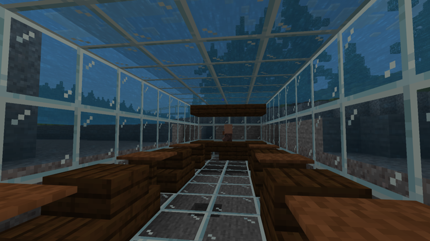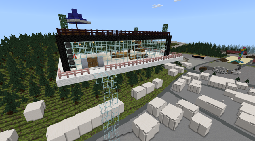 その後、マインクラフトで未来の遊び場・学び場をつくりましたが、その作品のなかに子どもたちが考える未来を感じる工夫がたくさん見られました。