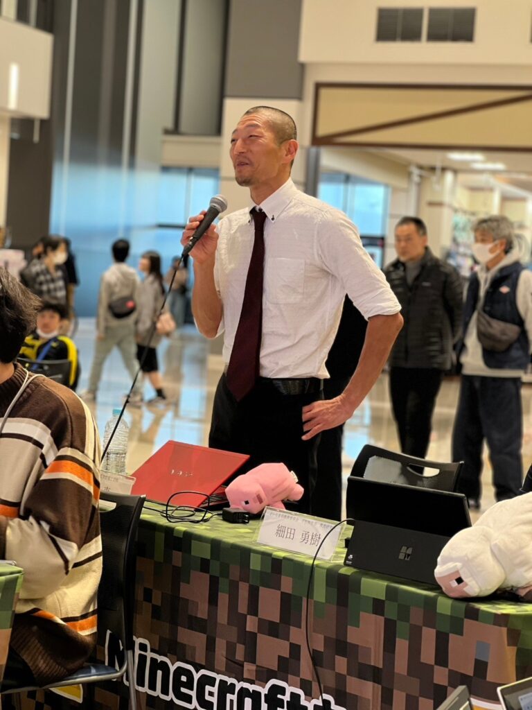 「たまたま通りかかってMinecraftカップを知った」というお客さんも、立ち止まって発表を聞いてくれていました。