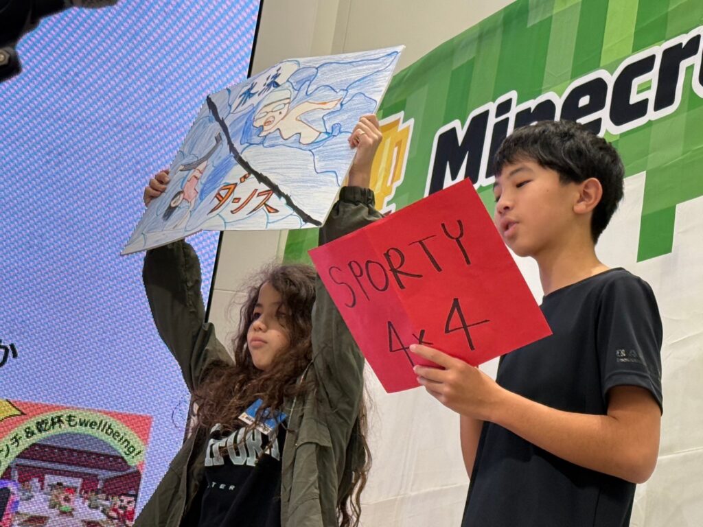 それぞれが考えるWell-beingについてマインクラフトの中で最大限表現し、その魅力を言葉と画像で伝えてくれました。子どもたちの考えの深さと技術力の高さに、大変驚かされました。