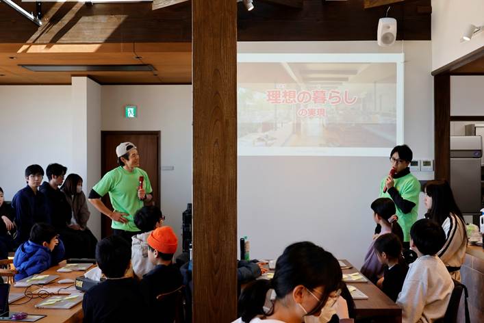 はじめに子どもたちは、理想の家づくりの大事な要素について学習。おしゃれな見た目に加えて高い機能性を持つ日本各地の家づくりの工夫などについて、学んでいきます。